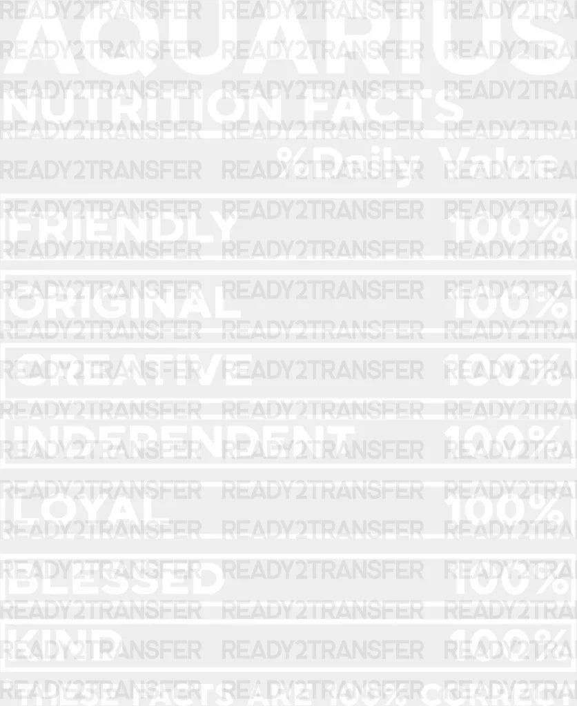 Aquarius Nutrition Facts - Zodiacs & Horoscopes DTF heat transfer