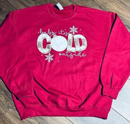Celebrate the holiday season with our Baby It's Cold Outside DTF Transfer, an ideal solution for creating t-shirts, sweatshirts, and more. This premium iron on DTF Transfer makes t-shirt printing effortless, delivering vibrant, high-resolution designs with ease. Perfect for custom DTF transfer projects, it ensures professional results whether you're a DIY enthusiast or a small business. Experience seamless heat transfer and lively colors that truly pop, transforming your creative ideas into festive apparel quickly and reliably.