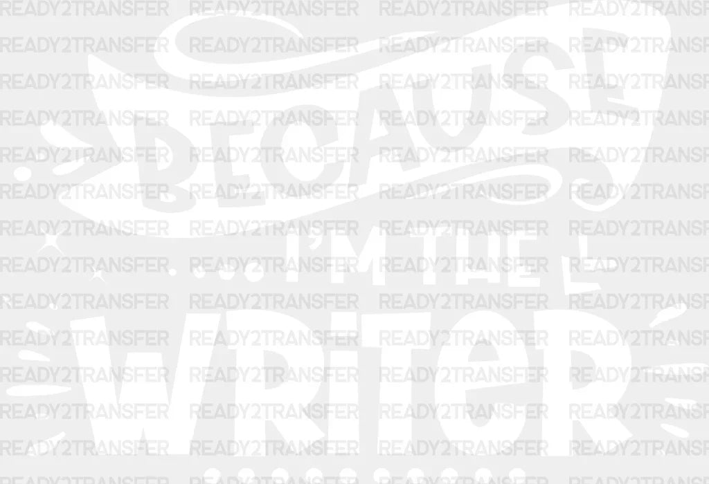 Express your creativity with the Because I'm The Writer - Writing DTF Heat Transfer, the ultimate solution for custom DTF transfer and t-shirt printing enthusiasts. Perfect for creating unique t-shirts, hoodies, and accessories, this iron on DTF transfer delivers vibrant, detailed designs through reliable heat transfer and DTF printing technology. Elevate your apparel game effortlessly with this high-quality DTF transfer designed for seamless application and stunning results.