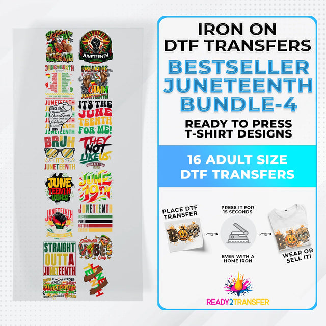 Best Seller Juneteenth T-shirt Designs Premade DTF Gangsheet - DTF Bundle 4 is backordered and will ship as soon as it is back in stock.