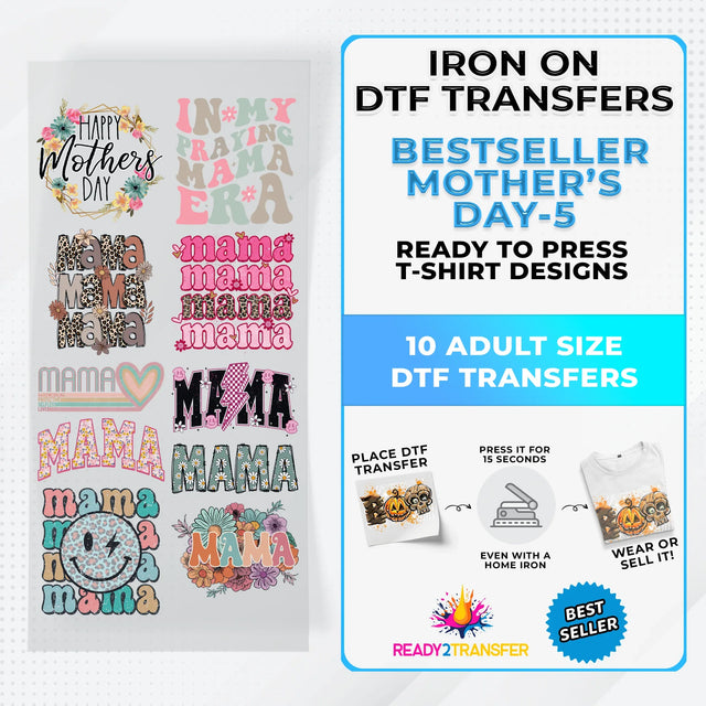 Best Seller Mother's Day T-shirt Designs Premade DTF Gangsheet - DTF Bundle 5