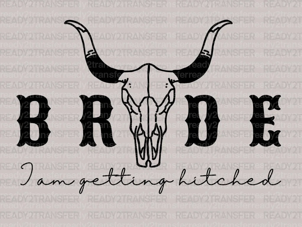 Bride I am getting hitched DTF Transfer - Adult Unisex - S & M (10") / White is backordered and will ship as soon as it is back in stock.