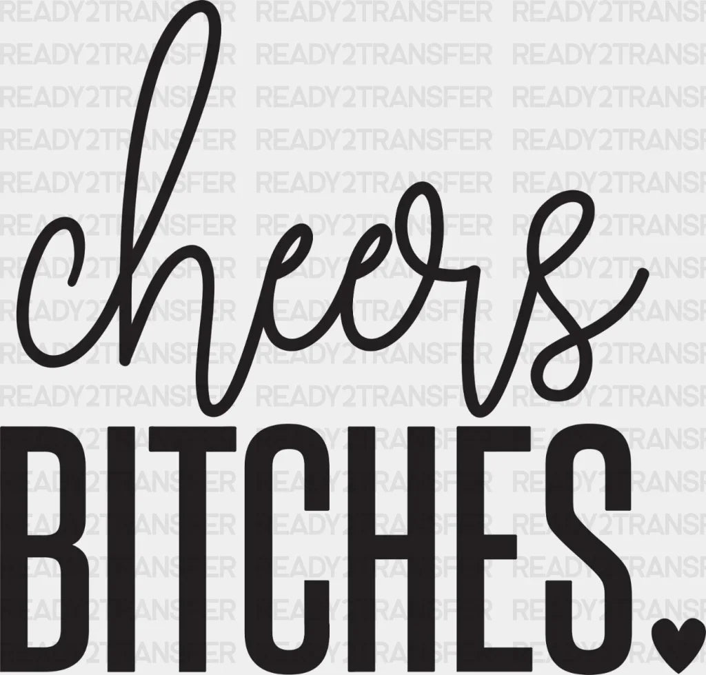 CHEERS BITCHES DTF Transfer - Adult Unisex - S & M (10") / Black is backordered and will ship as soon as it is back in stock.