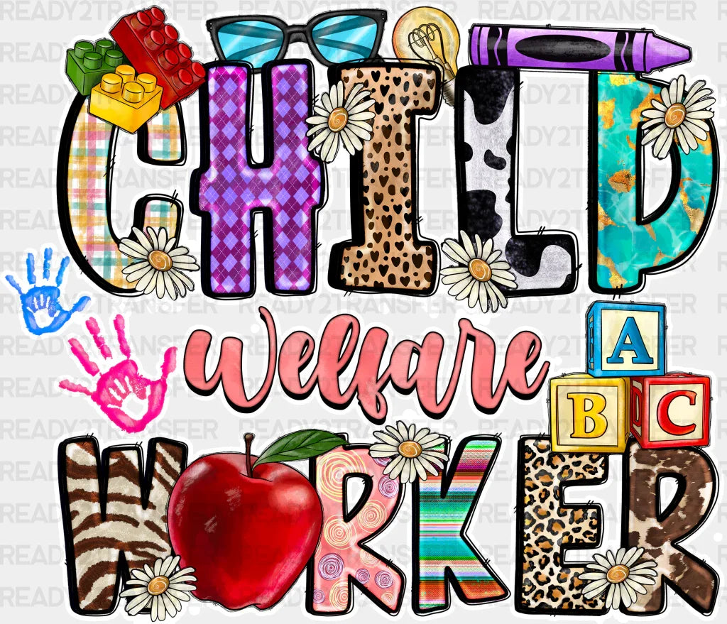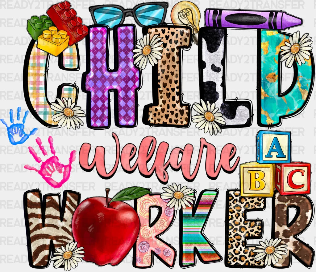 Child Welfare Worker - Teachers DTF heat transfer - Adult Unisex - S & M (10") / Black is backordered and will ship as soon as it is back in stock.
