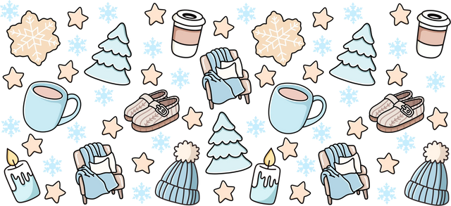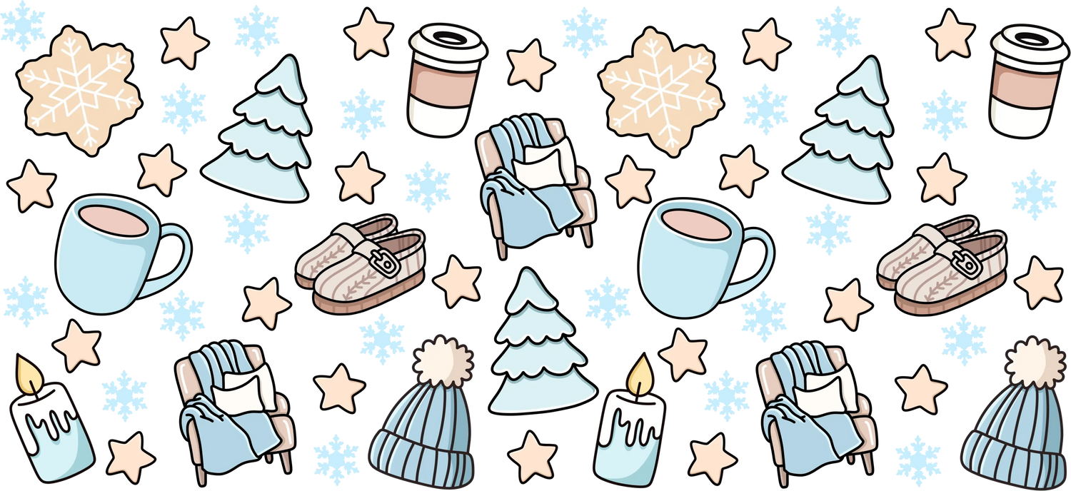 Coffee Snowflakes Stars - Winter Cup Wrap UV Sticker Permanent UV DTF Decal