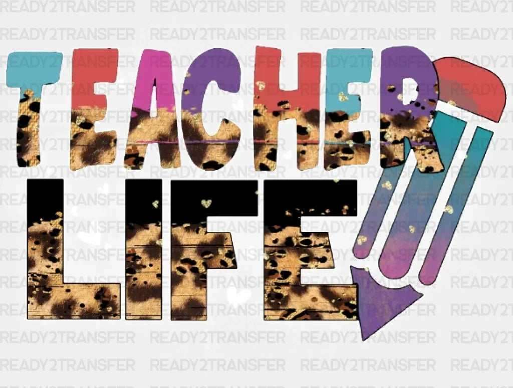 COLORFUL TEACHER LIFE DTF Transfer - Adult Unisex - S & M (10") / Black is backordered and will ship as soon as it is back in stock.