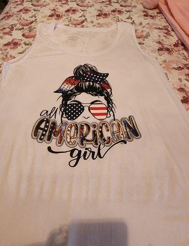 All American Girl 4th Of July DTF Heat Transfer, Independence Day Design, Fourth Of July DTF - Adult Unisex - S & M (10") / Black is backordered and will ship as soon as it is back in stock.