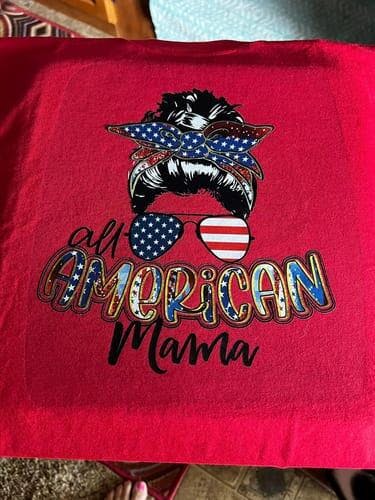 All American Mama 4th Of July DTF Heat Transfer, Independence Day Design, Fourth Of July DTF - Adult Unisex - S & M (10") / Black is backordered and will ship as soon as it is back in stock.