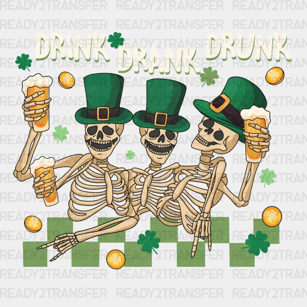 Drink Drank Drunk Skeleton St. Patrick's Day DTF Heat Transfer, Saint Patricks Day Design, St Paddys Day DTF