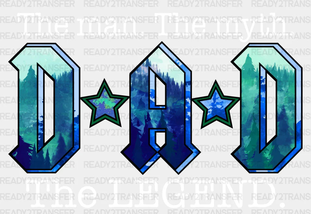 Father's Day Ready To Transfer DTF Designs, DAD The Legend, No Minimums. Custom DTF designs, easy to apply. Create your custom T-shirt in seconds.