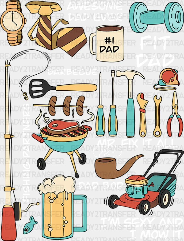 Father's Day Ready To Transfer DTF Designs, Fit Dad, No Minimums. Custom DTF designs, easy to apply. Create your custom T-shirt in seconds.