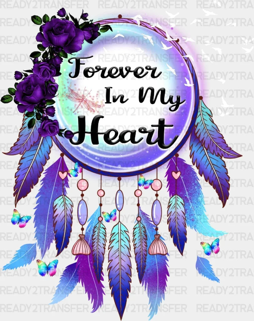 Forever In My Heart Purple Feathers DTF Transfer - Adult Unisex - S & M (10") / Black is backordered and will ship as soon as it is back in stock.