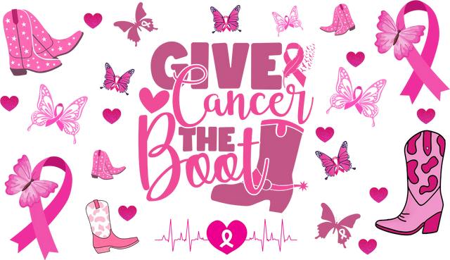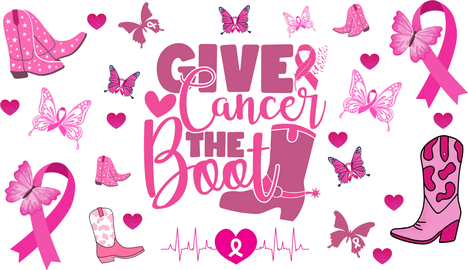Give Cancer The Boot - Awareness Cup Wrap UV Sticker Permanent UV DTF Decal