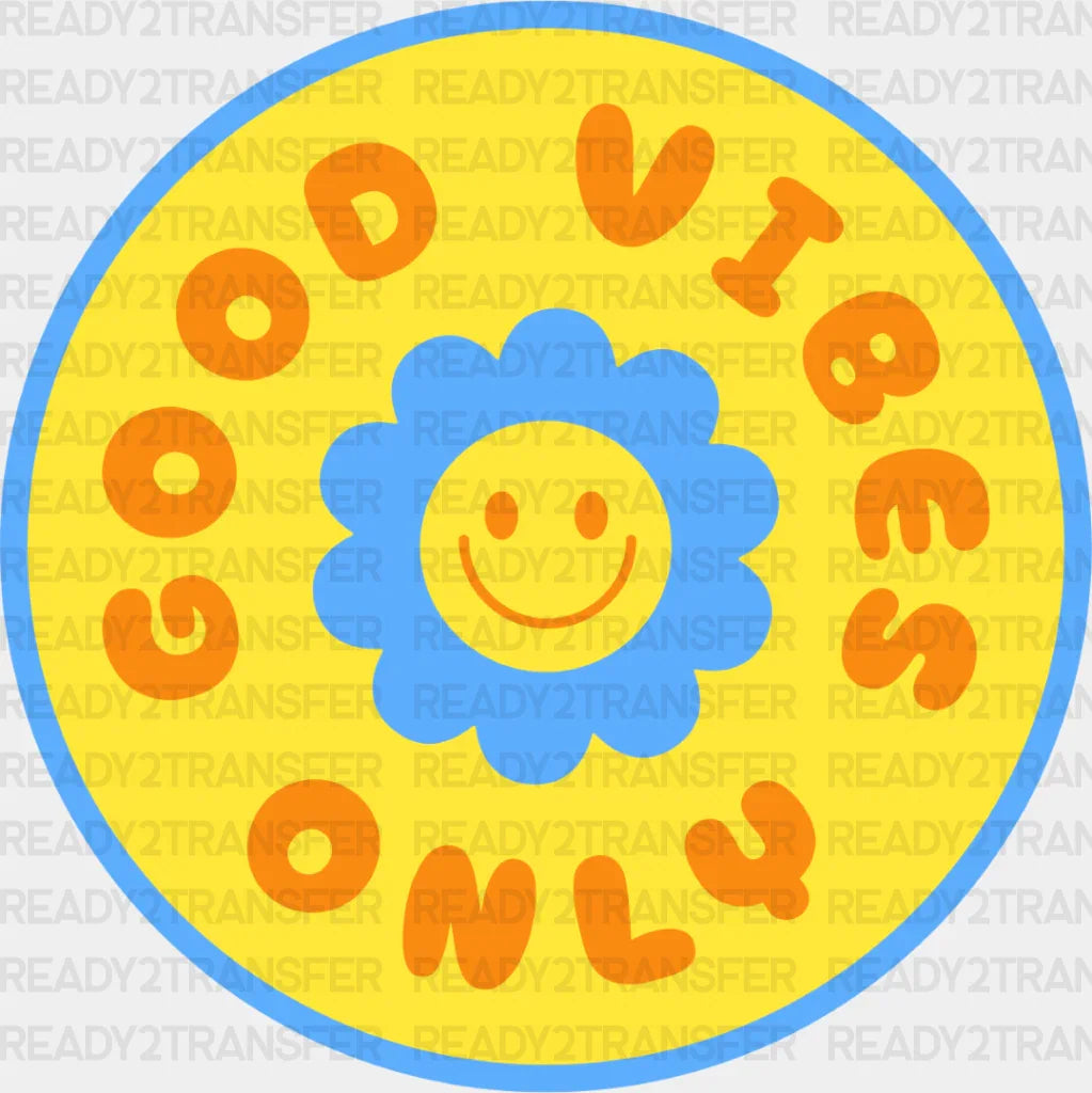 Good Vibes Only Yellow And Blue Flower Design - Good Vibes DTF Transfer
