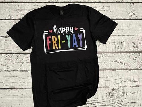 Happy FRI-YAY DTF Transfer - Adult Unisex - S & M (10") / White is backordered and will ship as soon as it is back in stock.