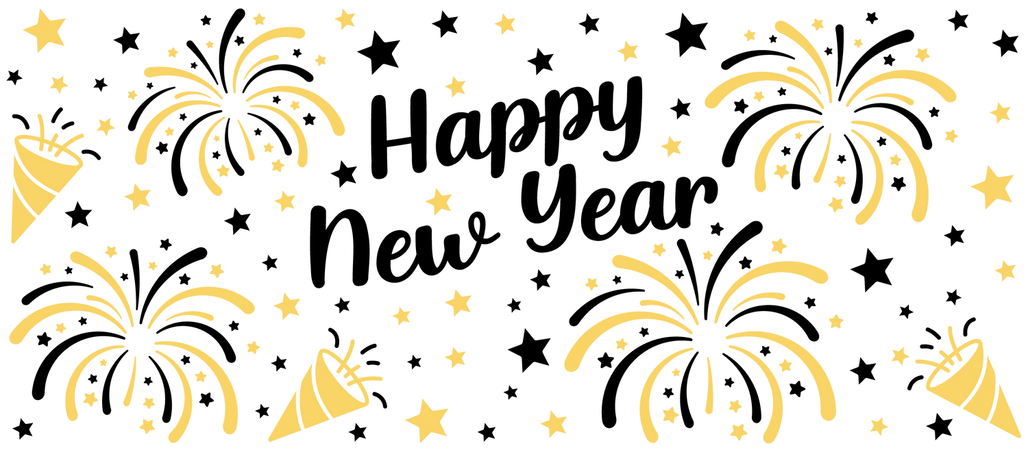 Happy New Year Black And Yellow - New Year Cup Wrap UV Sticker Permanent UV DTF Decal