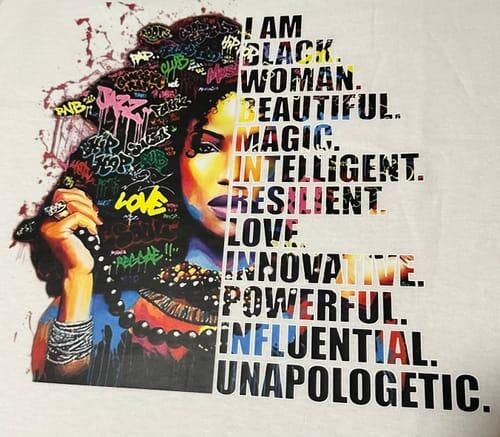 I AM BLACK WOMAN DTF Transfer - Adult Unisex - S & M (10") is backordered and will ship as soon as it is back in stock.