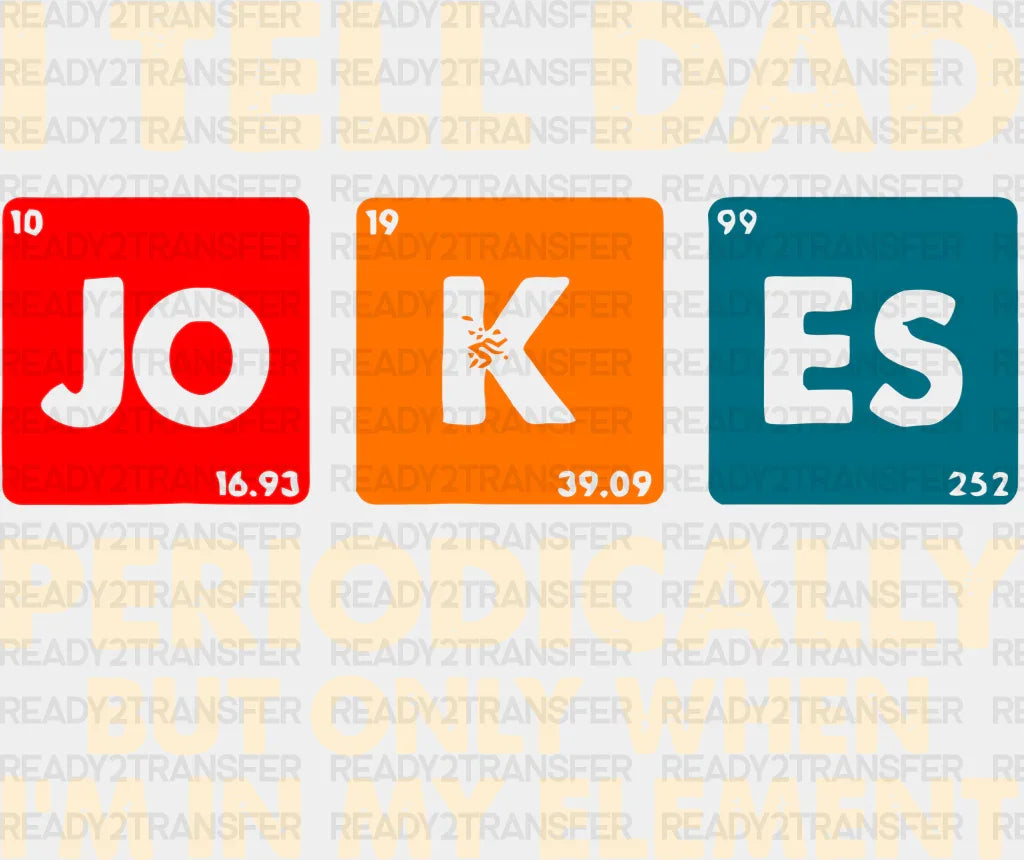 Father's Day Ready To Transfer DTF Designs, I Tell Dad Jokes Periodically, No Minimums. Custom DTF designs, easy to apply. Create your custom T-shirt in seconds.