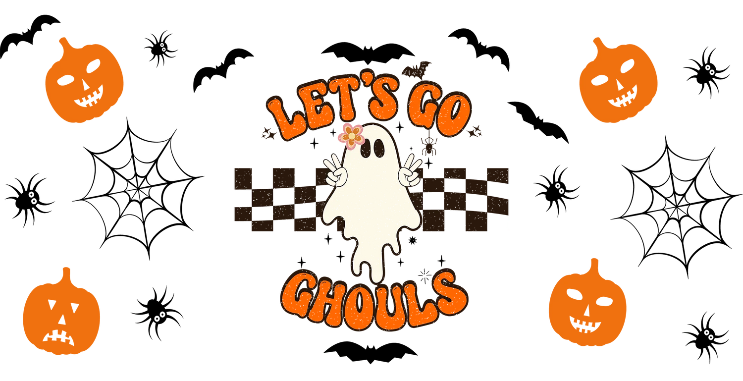 Let's Go Ghouls Pumpkin Design - Halloween Cup Wrap UV Sticker Permanent UV DTF Decal