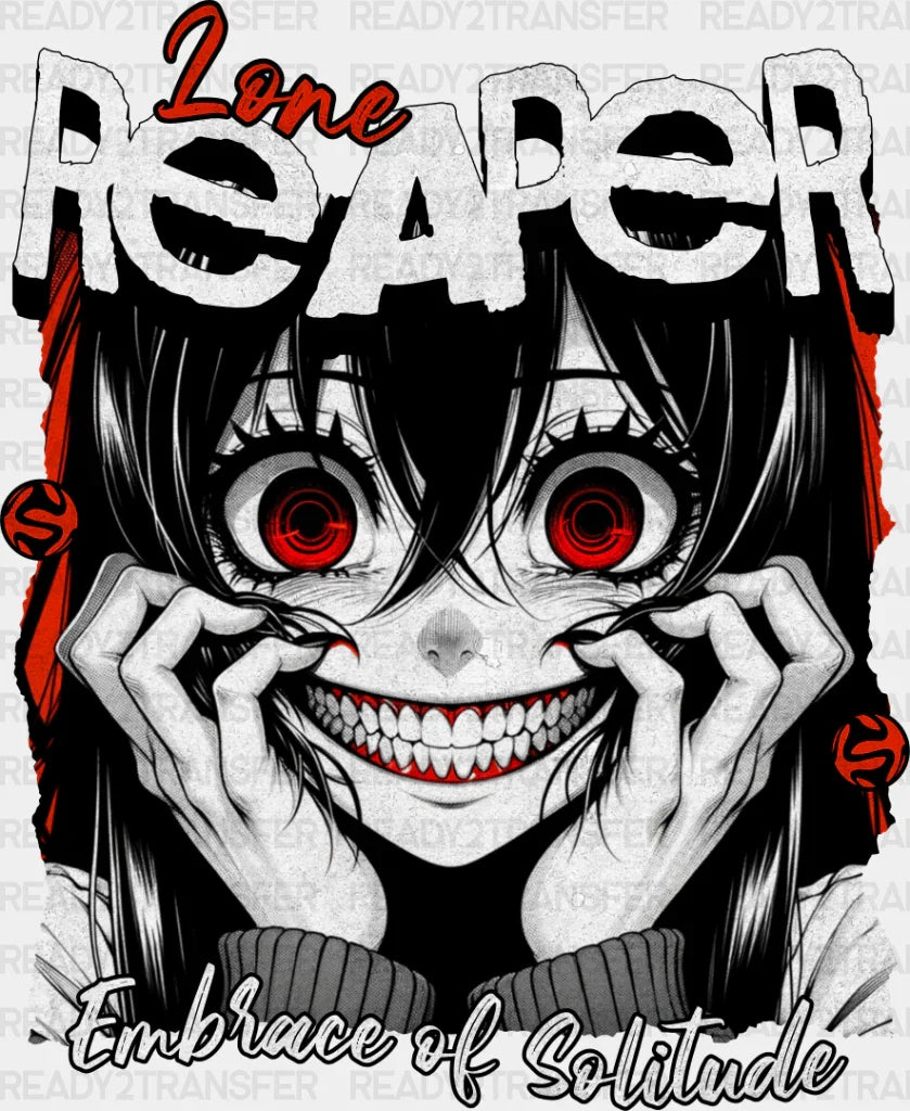 Lone Reaper - Anime DTF heat transfer - Adult Unisex - S & M (10") / Dark Color Design ( See imaging ) is backordered and will ship as soon as it is back in stock.