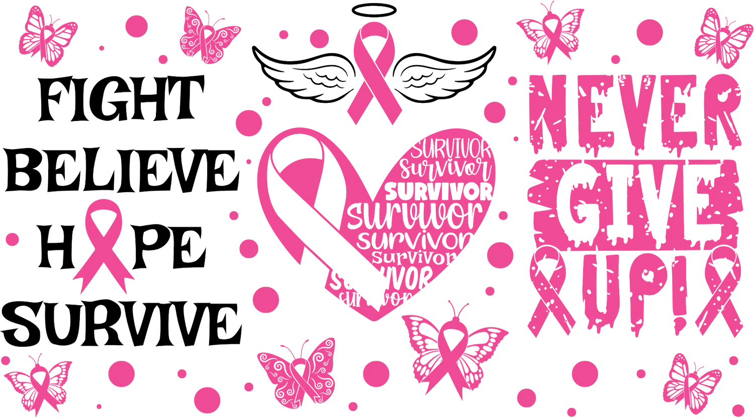 Never Give Up Heart - Awareness Cup Wrap UV Sticker Permanent UV DTF Decal