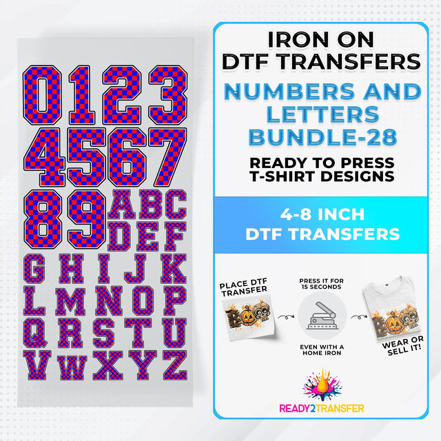 Numbers And Letters Bundle T-shirt Designs Premade DTF Gangsheet - DTF Bundle 28 is backordered and will ship as soon as it is back in stock.