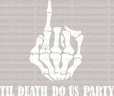ONLY TIL DEATH DO US PARTY DTF Transfer - Adult Unisex - S & M (10") / White is backordered and will ship as soon as it is back in stock.
