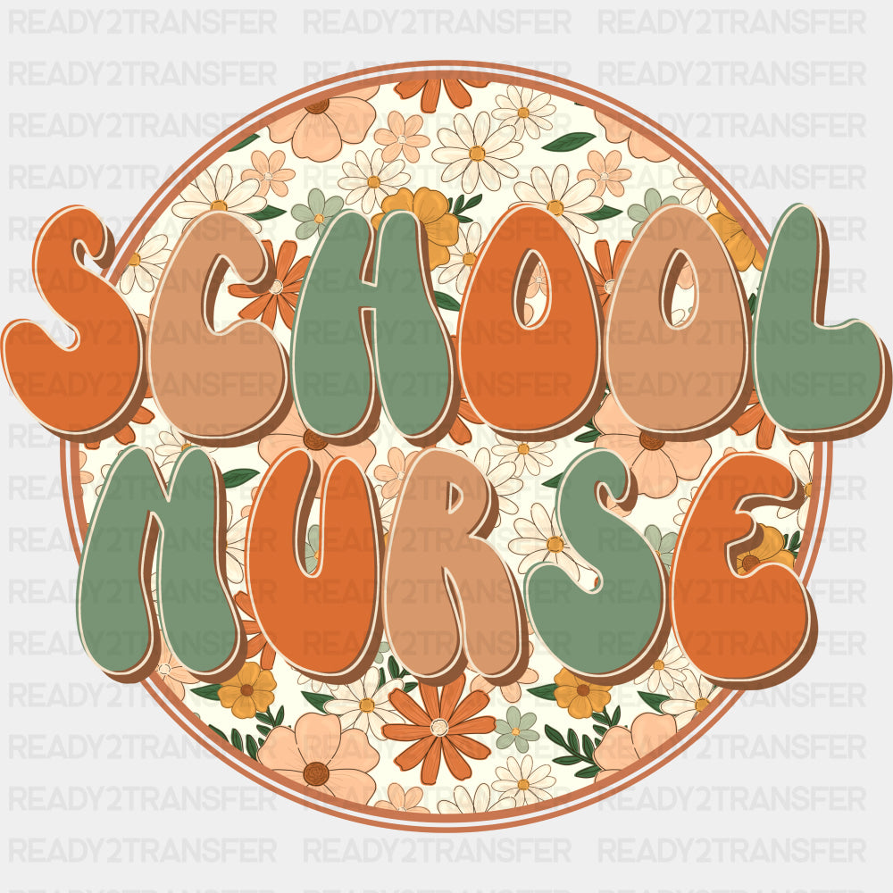 School Nurse, Retro, Flowers - School Nurse DTF Transfers