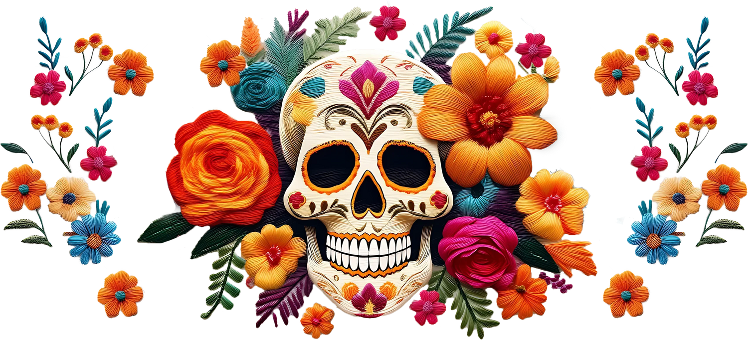 Skull And Flowers - Cinco de Mayo Cup Wrap UV Sticker Permanent UV DTF Decal