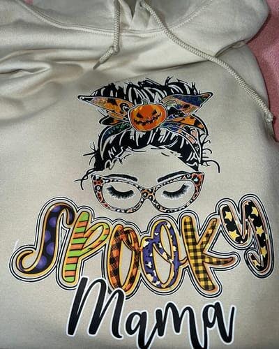 SPOOKY MAMA DTF Transfer - Adult Unisex - S & M (10") / Black is backordered and will ship as soon as it is back in stock.