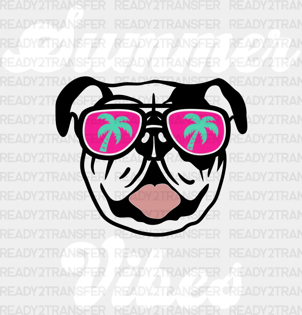 Summer Ready To Transfer DTF Designs, Summer Vibes Bulldog, No Minimums. Custom DTF designs, easy to apply. Create your custom T-shirt in seconds.