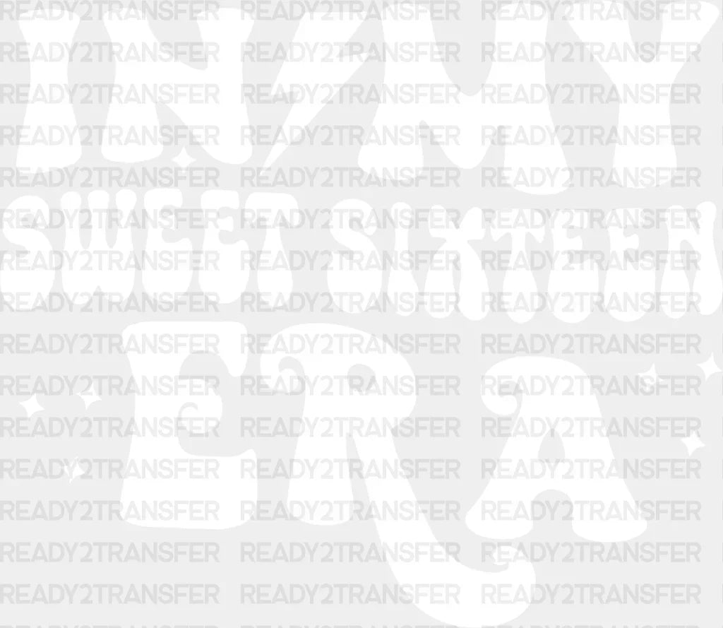 Elevate your t-shirt design game with the Sweet Sixteen Era Lightning - Sweet 16 DTF heat transfer. This vibrant iron on DTF transfer lets you easily create custom T-shirts with stunning, detailed prints through advanced DTF printing technology. Perfect for personalized t-shirt printing, this heat transfer offers a seamless way to bring your unique designs to life on any fabric.