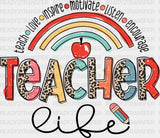 TEACHER LIFE MOTIVATE DTF Transfer - Adult Unisex - S & M (10") / Black is backordered and will ship as soon as it is back in stock.