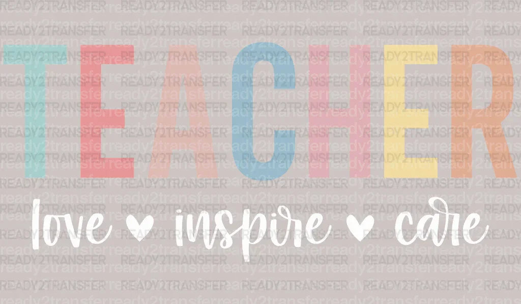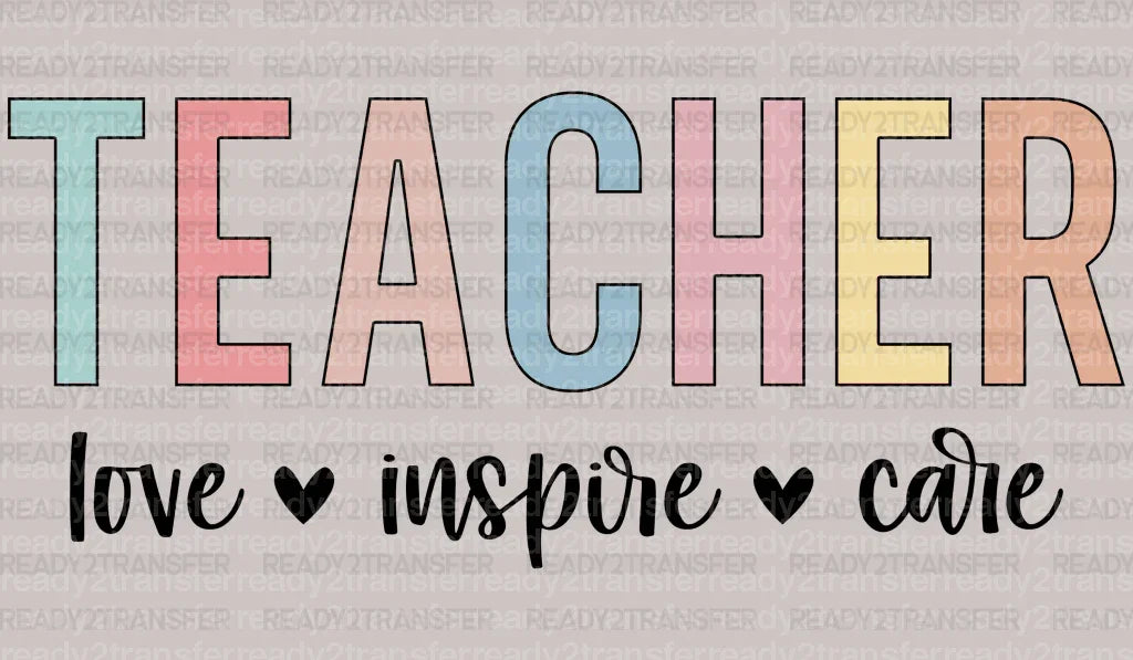 Teacher Love Inspire Care DTF Transfer - Adult Unisex - S & M (10") / Black is backordered and will ship as soon as it is back in stock.