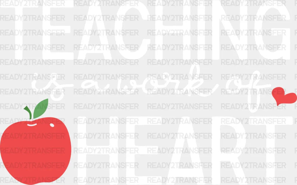 TEACHING IS A WORK OF HEART DTF Transfer - Adult Unisex - S & M (10") / Black is backordered and will ship as soon as it is back in stock.