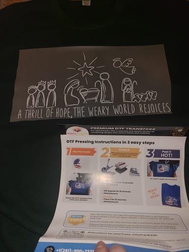 Celebrate the spirit of the season with our "The Weary World Rejoices" DTF transfer, a perfect solution for creating t-shirts, hoodies, and more with ease. This custom DTF transfer allows you to effortlessly produce stunning, vibrant designs through t-shirt printing and heat transfer techniques. Ideal for both hobbyists and professionals, this DTF transfer brings holiday cheer to your apparel in just minutes.