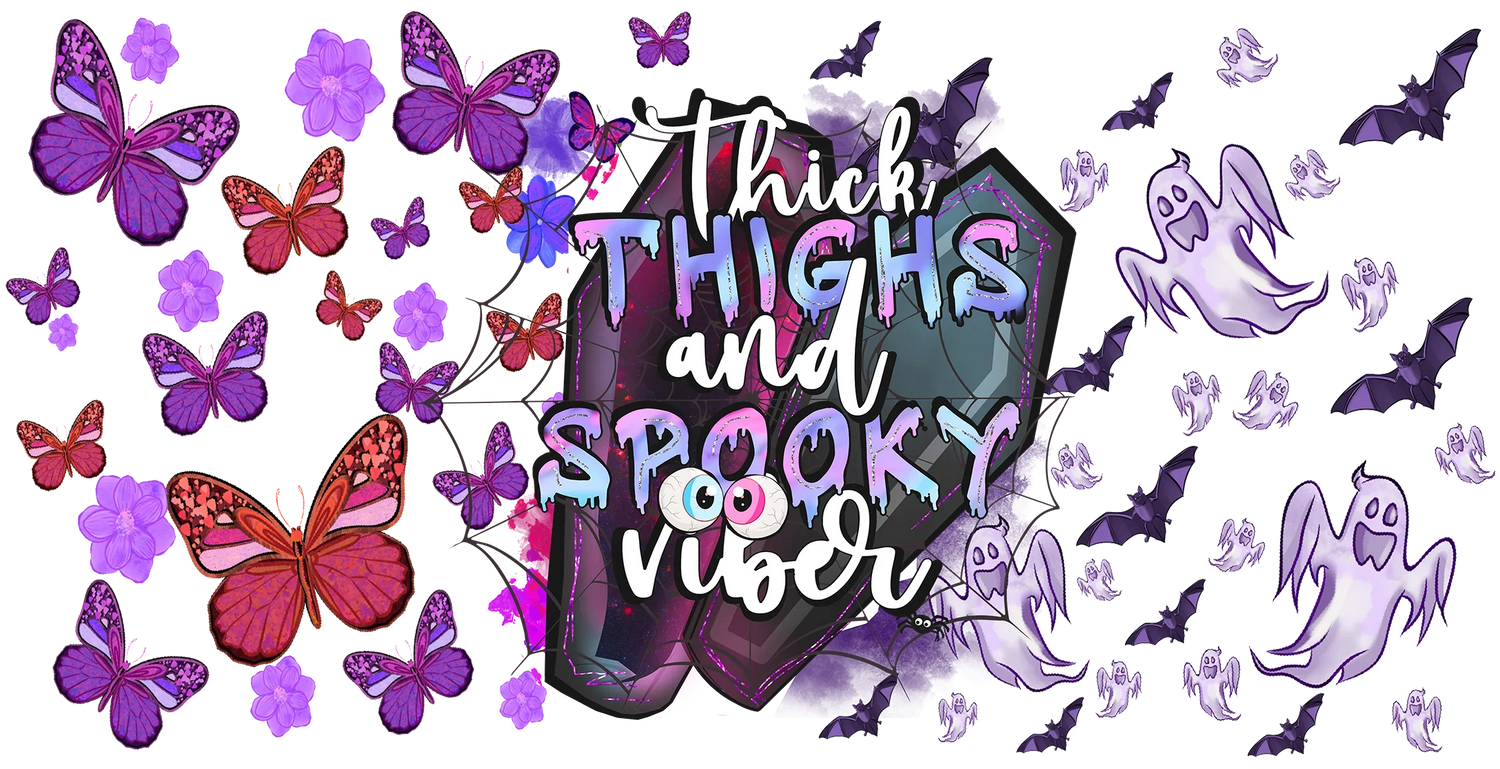Thick Thighs And Spooky Vibes - Halloween Cup Wrap UV Sticker Permanent UV DTF Decal