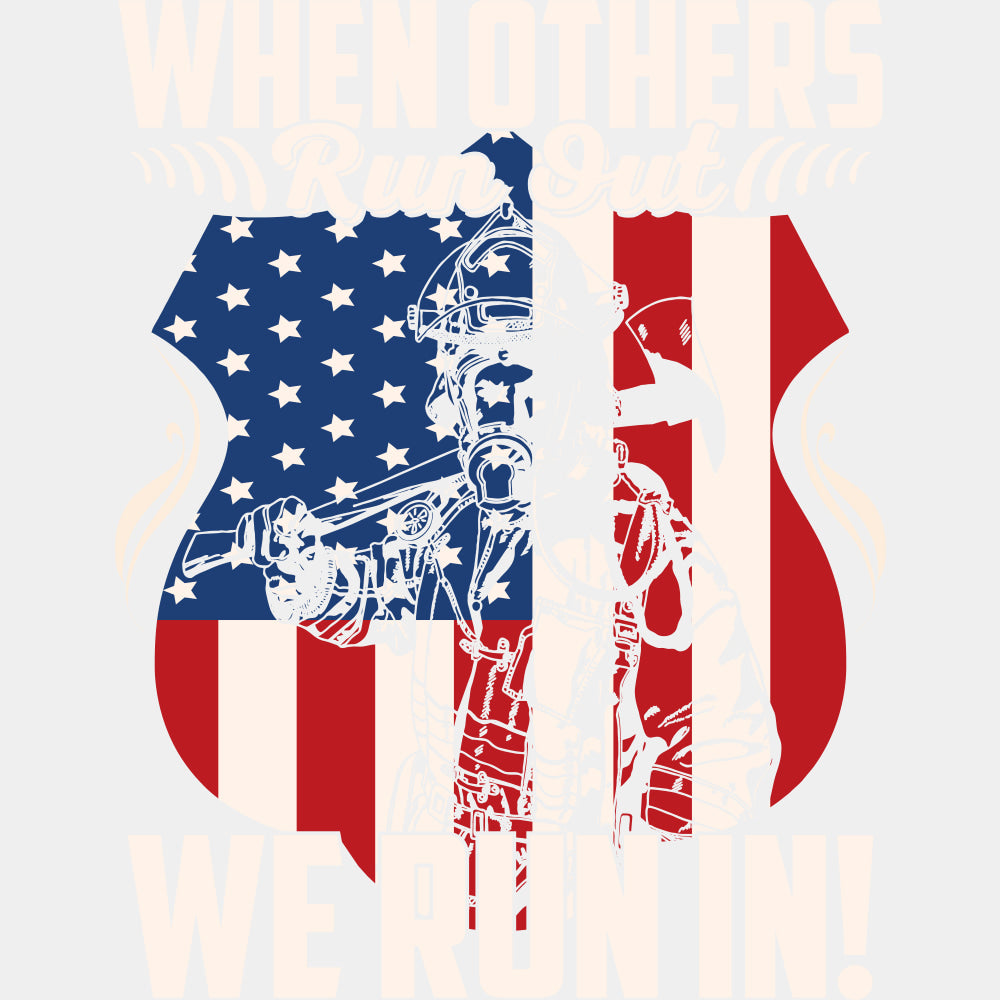 When Others Run Out, We Run In - Fire Department DTF Transfers - Adult Unisex - S & M (10") / Dark Color Design (See Imaging) is backordered and will ship as soon as it is back in stock.